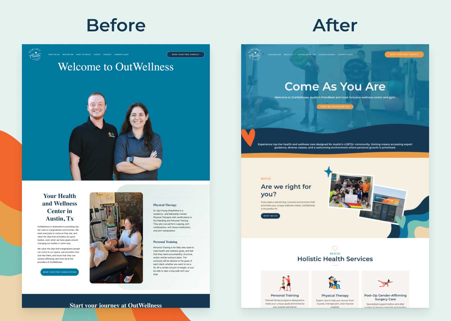 OutWellness ATX, an inclusive wellness center and gym for the LGBTQ+ community, needed a website revamp to increase lead generation and better represent their inclusive brand.